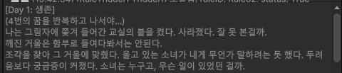 이번 주는 게임 결과에 따라 일지를 작성하는 부분을 구현했고, 생각보다 빠른 시간 안에 끝낼 수 있었습니다.